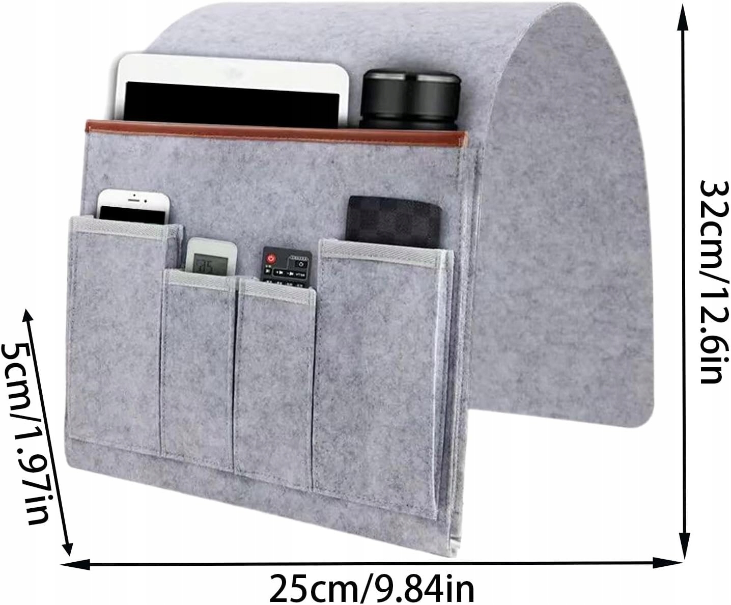 Матеріал: фетр Колір: сірий, коричневий, чорний. Розмір продукту: приблизно 32 x 25 x 5 см. Вага: приблизно 180 г. Вміст упаковки: 1 х органайзер для дивана