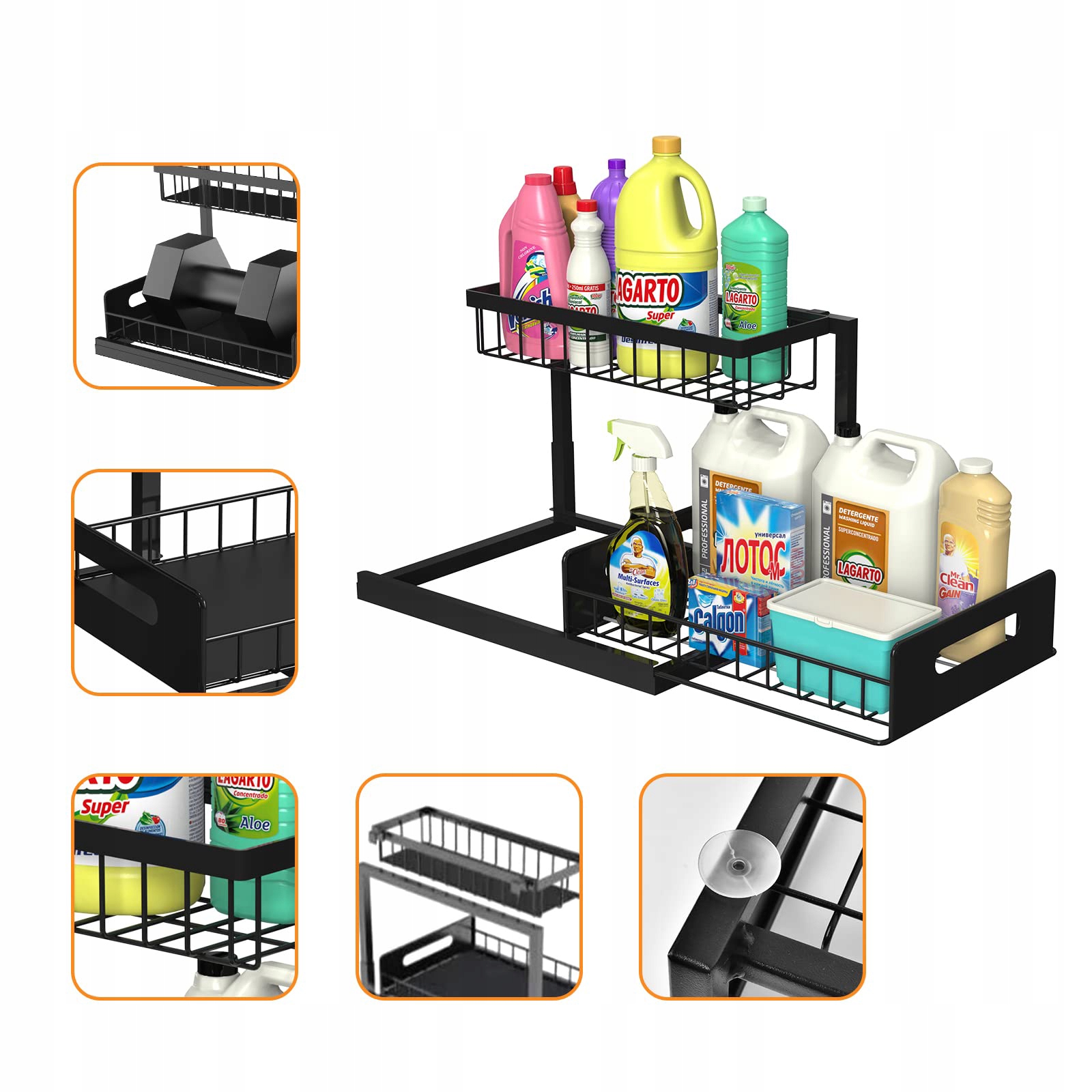 - Чудово підходить для раковин, кухонь, ванних кімнат, пралень тощо. Використовуйте для зберігання косметики для ванної кімнати, кухонних спецій або миючих засобів тощо, щоб підтримувати порядок. p>