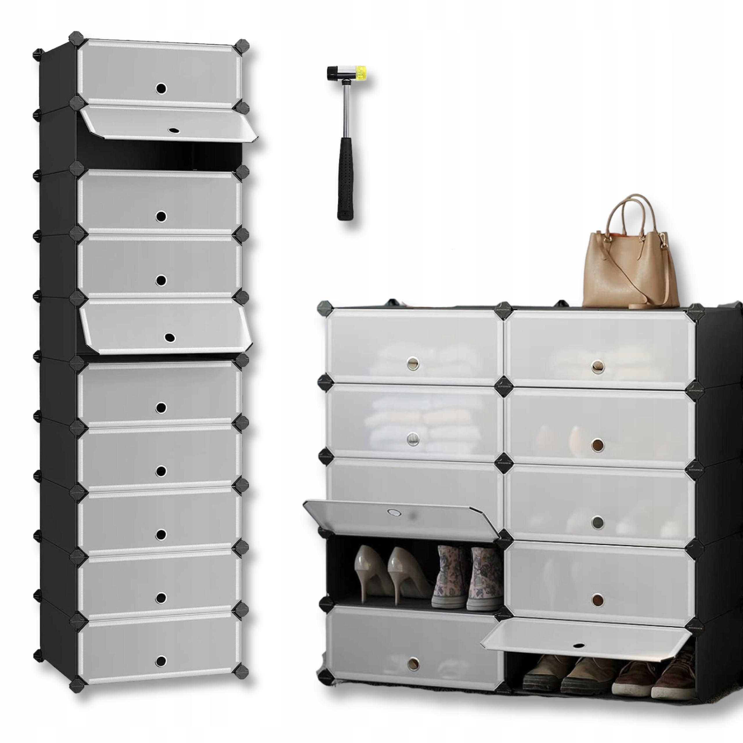 Шафа має до 10 рівнів, це ідеальне рішення для зберігання взуття у вашому домі. Завдяки модульній конструкції ви можете легко адаптувати шафу до своїх потреб і простору. Виготовлений з високоякісних матеріалів, забезпечує довговічність і надійність. Ідеально підходить для підтримки порядку та організації в залі чи спальні. Модульна шафа - практичний елемент дизайну Вашого інтер'єру.