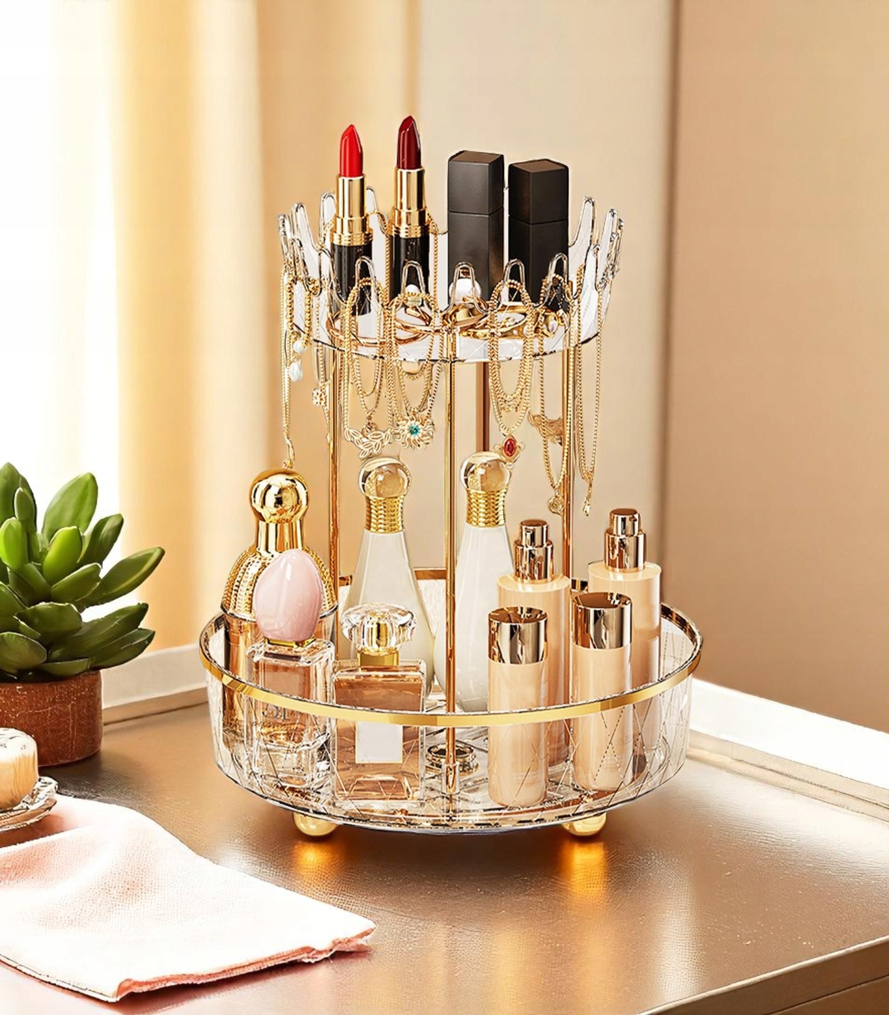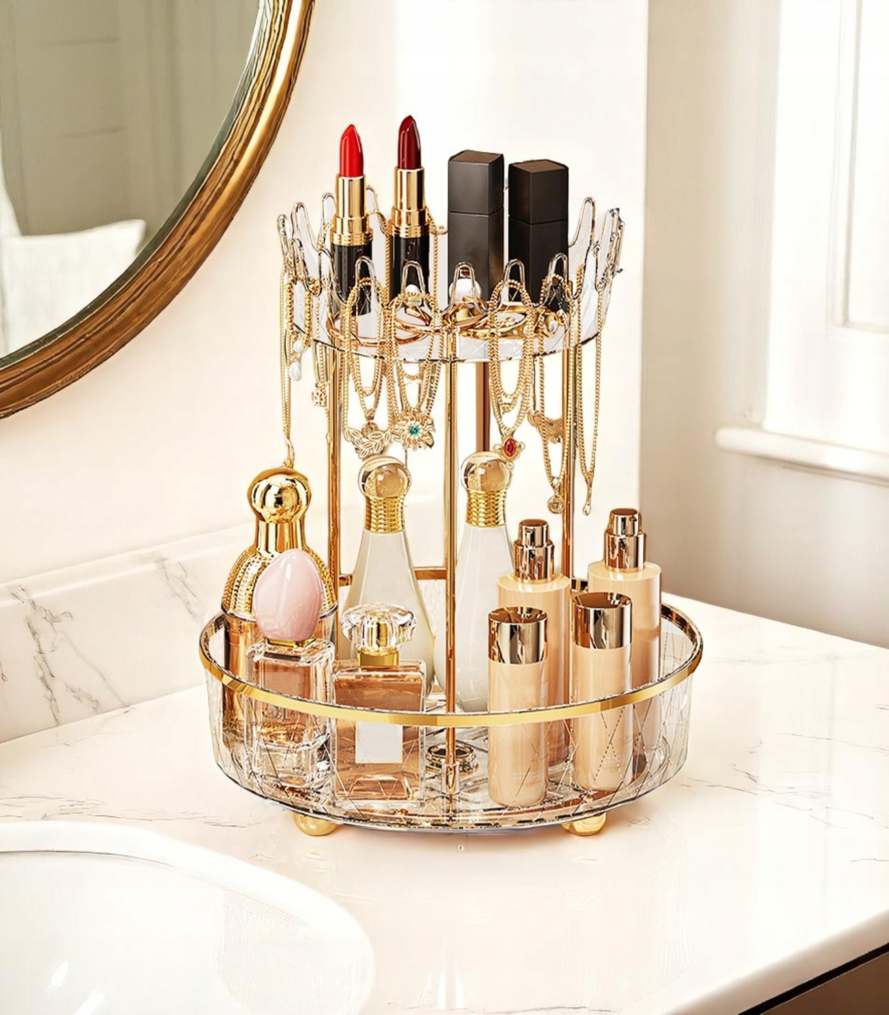 ✅ Нижні полиці - ємність для парфумів, кремів, аксесуарів - Ви отримуєте додатковий простір, не займаючи цінного місця вгорі. Він не ковзає і не впаде, навіть при швидкому обороті.