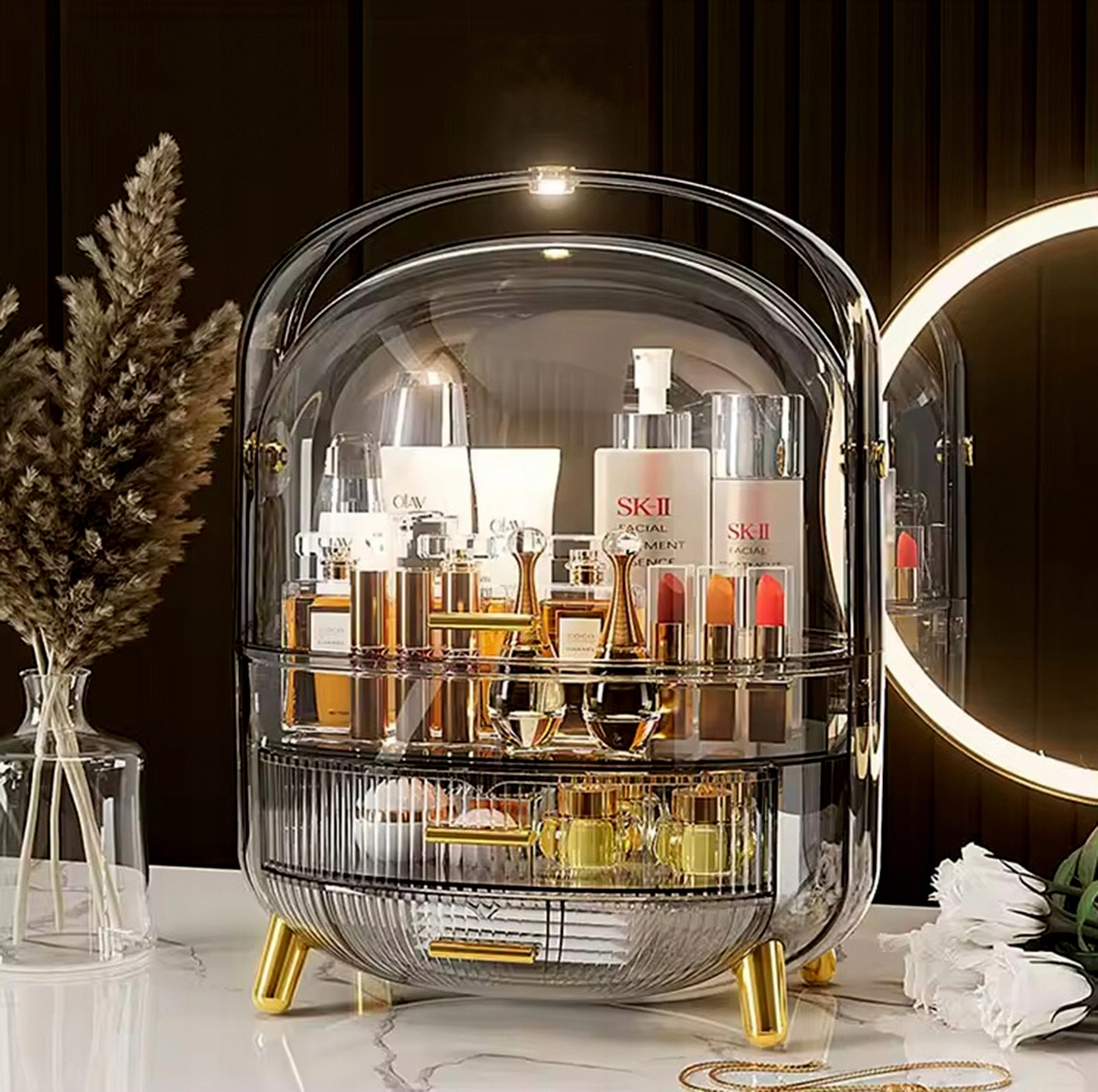 ✅ Витончений вигляд: прозора верхня кришка з підйомною куполоподібною кришкою полегшує швидкий доступ до вашої косметики, водночас створюючи стильний акцент.