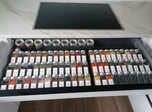 Кожна спеція легко доступна і видима. Більше немає пошуку ящиків у пошуках цієї спеції. Тепер кожна банка знаходиться у ваших пальцях, замовлена і готова до використання.