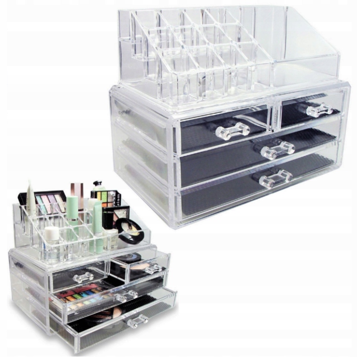 ☑️ Дуже практичний органайзер допоможе тримати в порядку косметику та прикраси. Має 4 шухляди з ручками та м'яким покриттям. Верхня частина має багато практичних відділень, які вміщають буквально все.