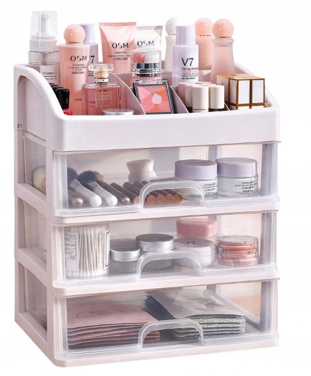 Органайзер має 3 більші ящики. Крім того, його верхня частина розділена на сегменти, тому ви легко зможете організувати місце для косметики або сережок різного розміру.