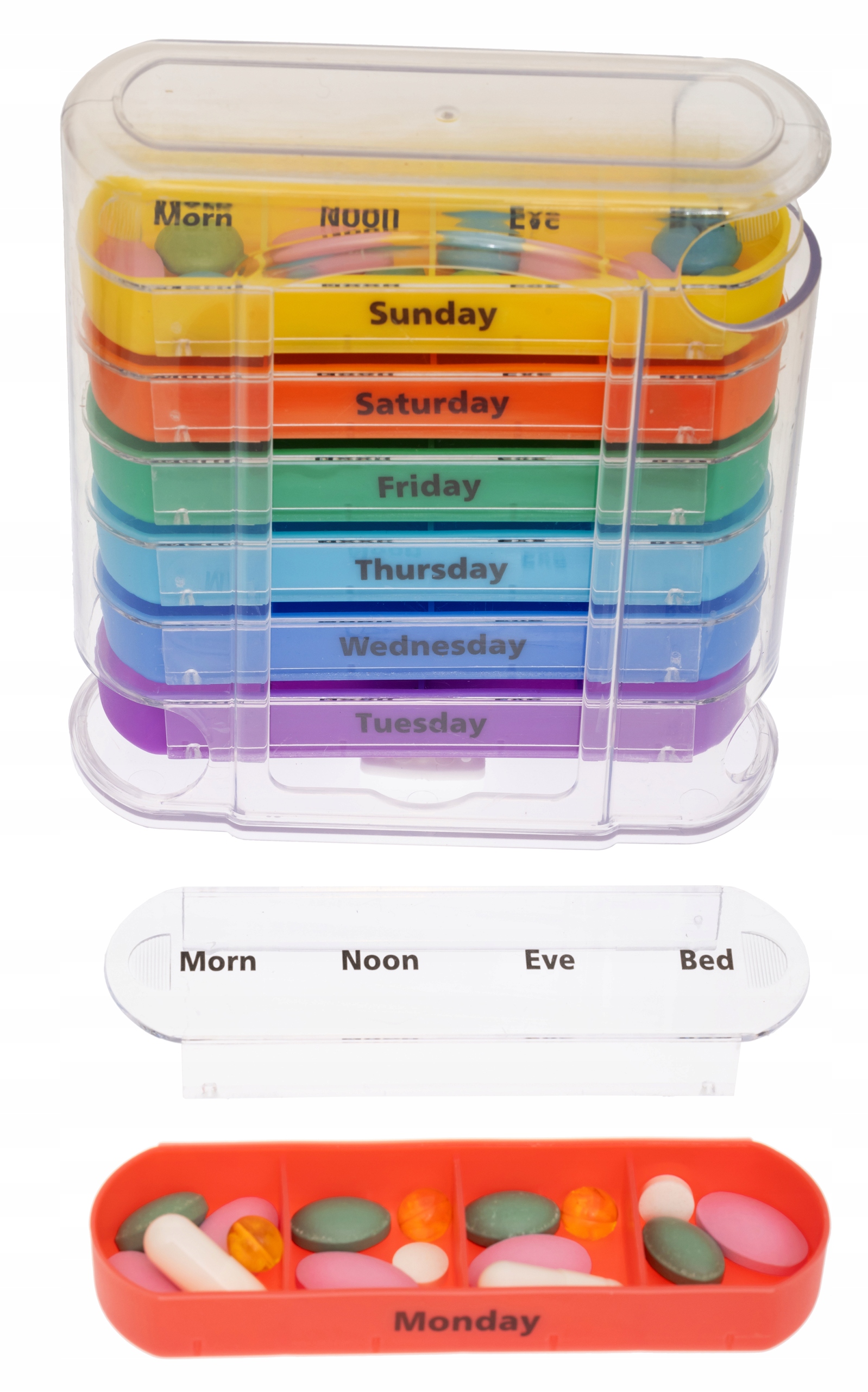 Контейнер для ліків - це ідеальне рішення для людей , які регулярно приймають ліки. Це також хороший вибір для похилого віку або людей з обмеженою мобільністю .