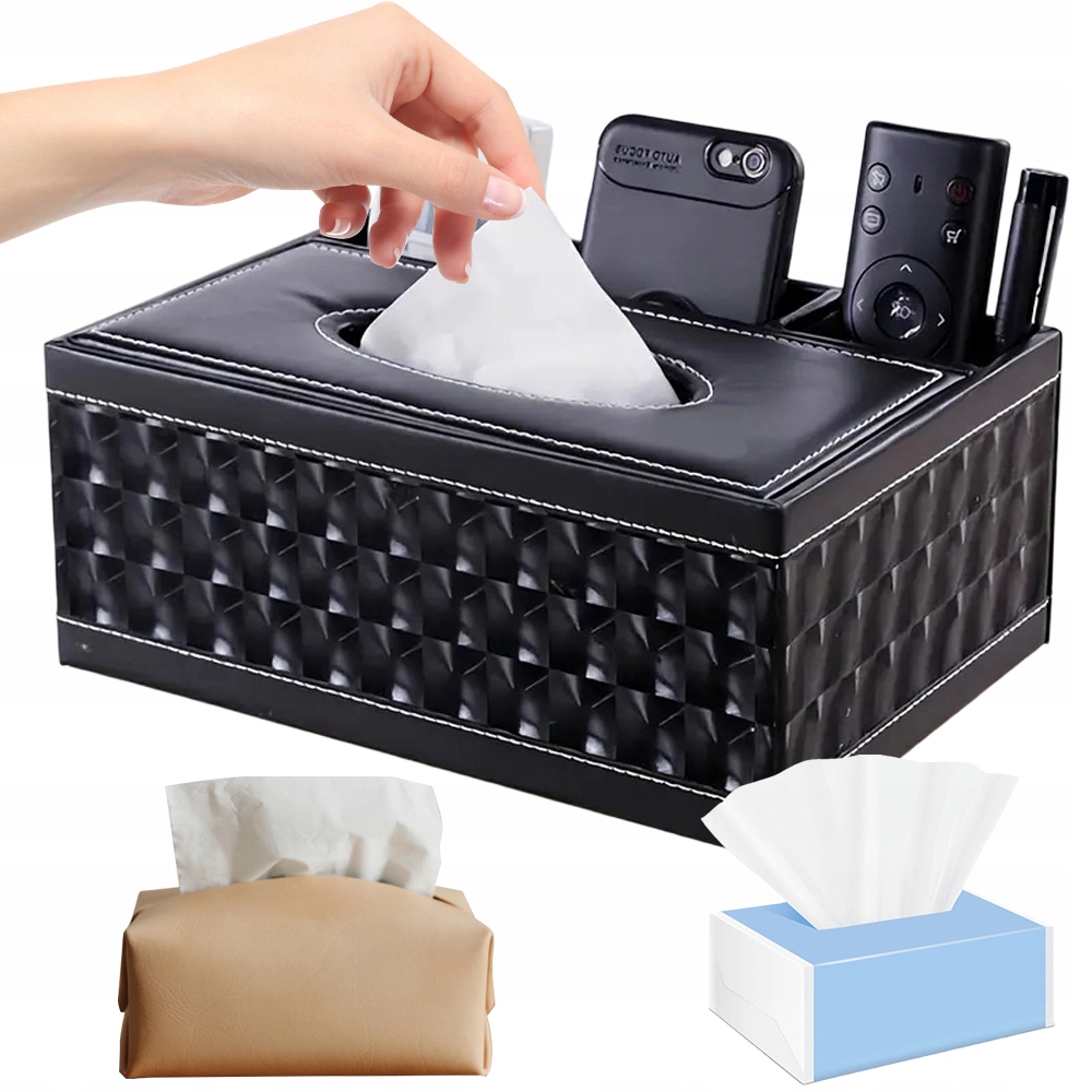 ОРГАНІЗАТОР НА ПІЛЬМ/СТОЛ: КОРОБКА ДЛЯ СЕРВЕТОК + ПУЛЬТ ДИСТАНЦІЙНОГО КЕРУВАННЯ, ЧОРНИЙ 24X17 СМ