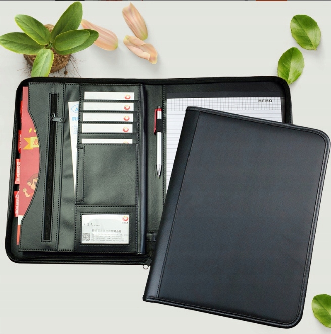 Портфель для папки з документами– це корисний органайзер, який дозволяє впорядковувати контракти, примітки, рахунки-фактури та інші друковані матеріали. Він має форму портфеля на блискавці.