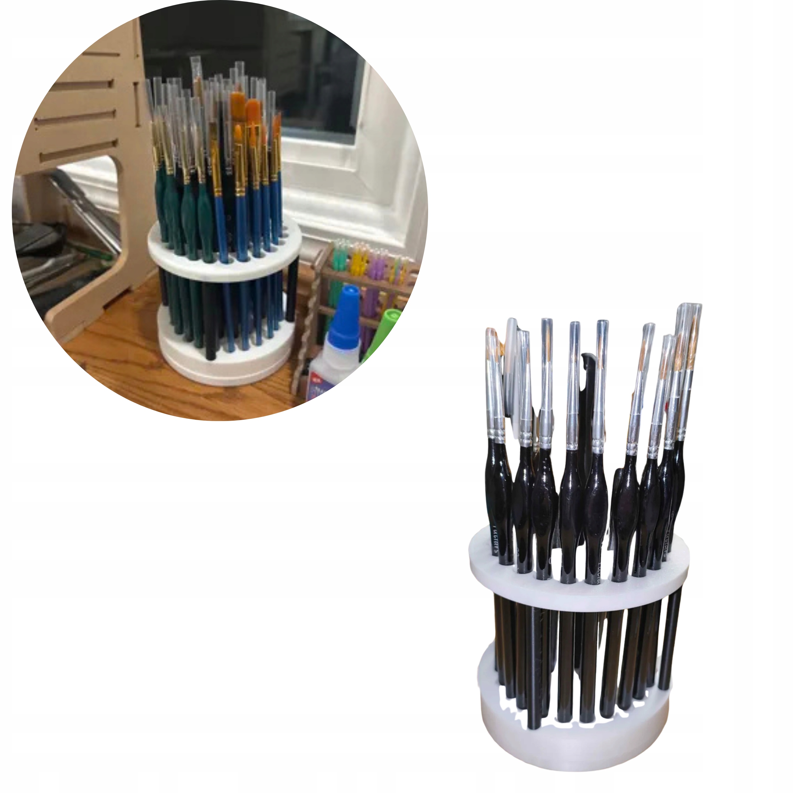 Коли ви створюєте картину, макет чи нейл-арт, кожна секунда та кожен пензель мають значення. Цей органайзер розташовує інструменти вертикально, щоб щетина не торкалася стільниці і легше сушилася після прання. Дворівневі колеса з кількома отворами дозволяють розділяти щітки за розміром або використанням. Компактна форма поміститься на невеликому письмовому столі, а пластик витримає щоденне використання в студії, класі чи домашньому куточку DIY.