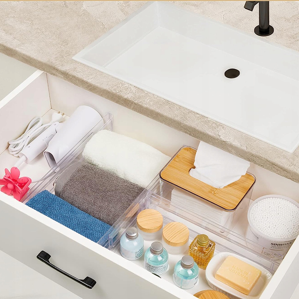 ⭐ Багатофункціональні розпірки ящиків: Ви можете створити власне місце зберігання в ящиках де завгодно. Ідеально підходить для організації відсіків у ящиках та легкого пошуку необхідних предметів. Ідеально підходить для організації ящиків для сміття, одягу, кухонного посуду, офісних матеріалів, макіяжу, безладу у ванній кімнаті та не тільки