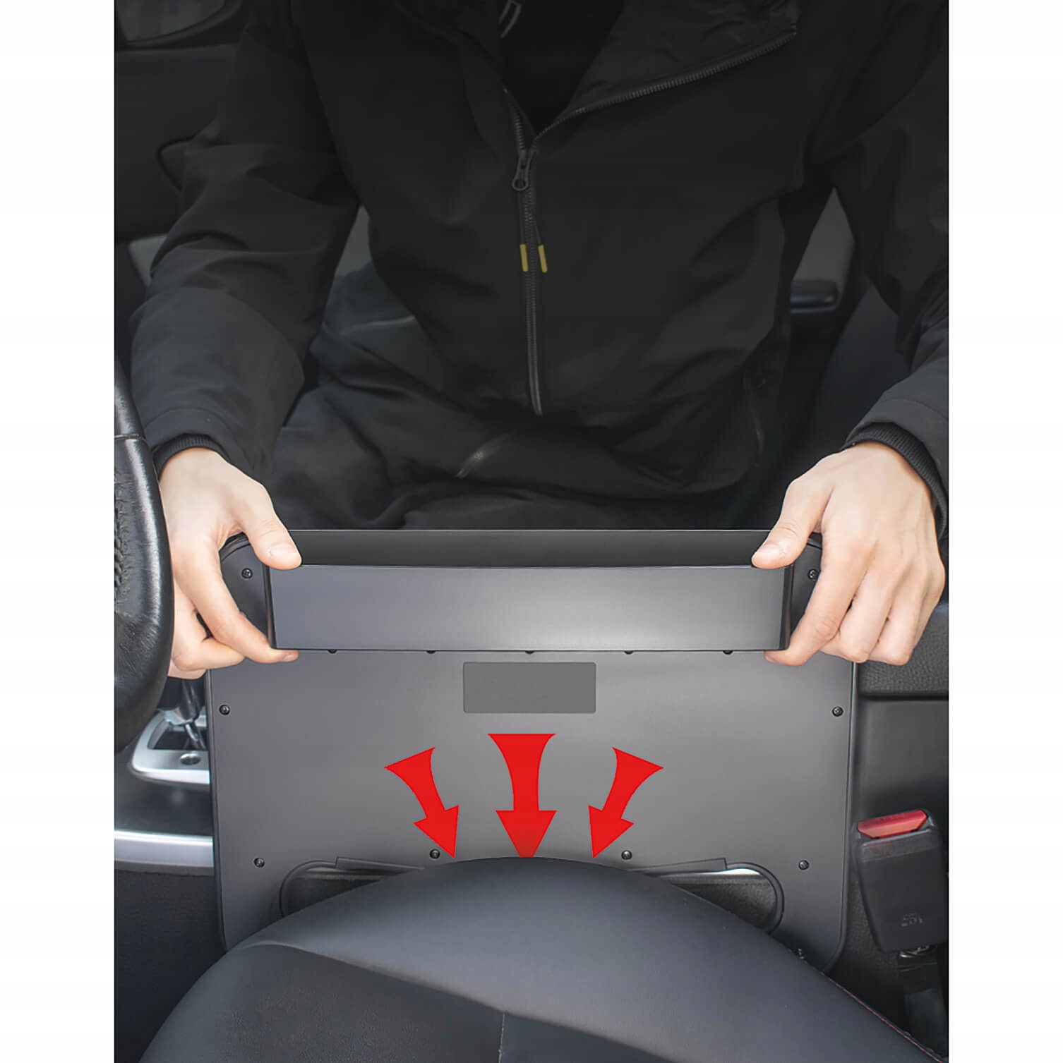 - можна встановити на кермі за кілька секунд, а коли воно не використовується, воно може бути заховане між кріслом дуже розумною кишеню для дрібних предметів.