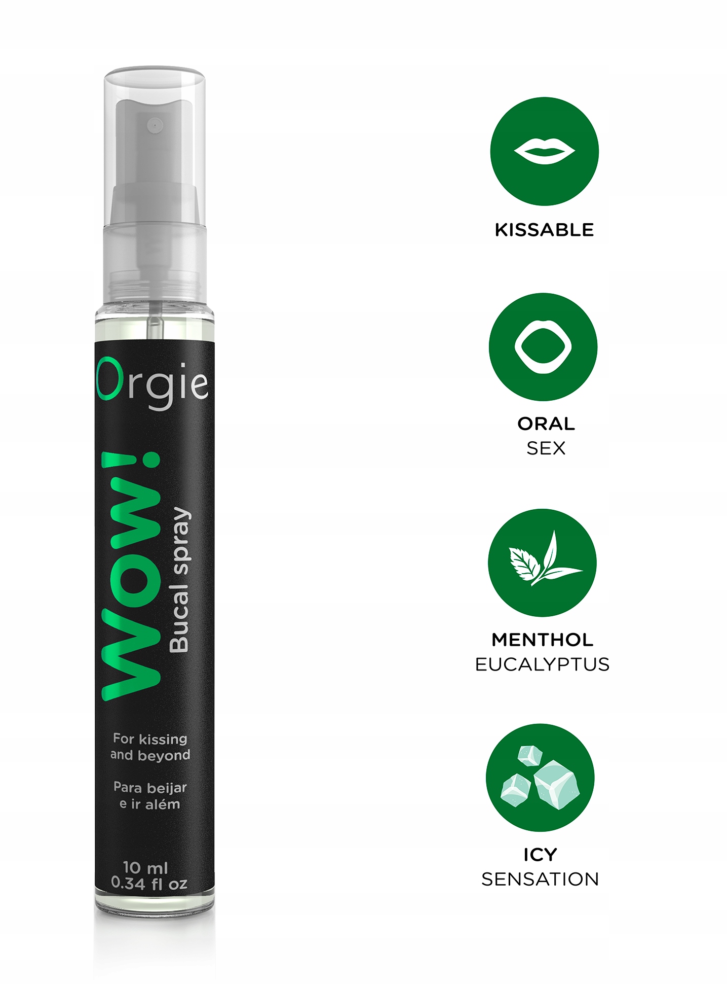 ОРГІЯ ВАУ! Bucal SprayКрижані сенсорні відчуття надзвичайно приємні під час поцілунків і орального сексу. Формула з ментолом і евкаліптом робить Вау! виводить поцілунки на новий рівень і стимулює задоволення від орального сексу за допомогою захоплюючих крижаних сенсорних вражень.