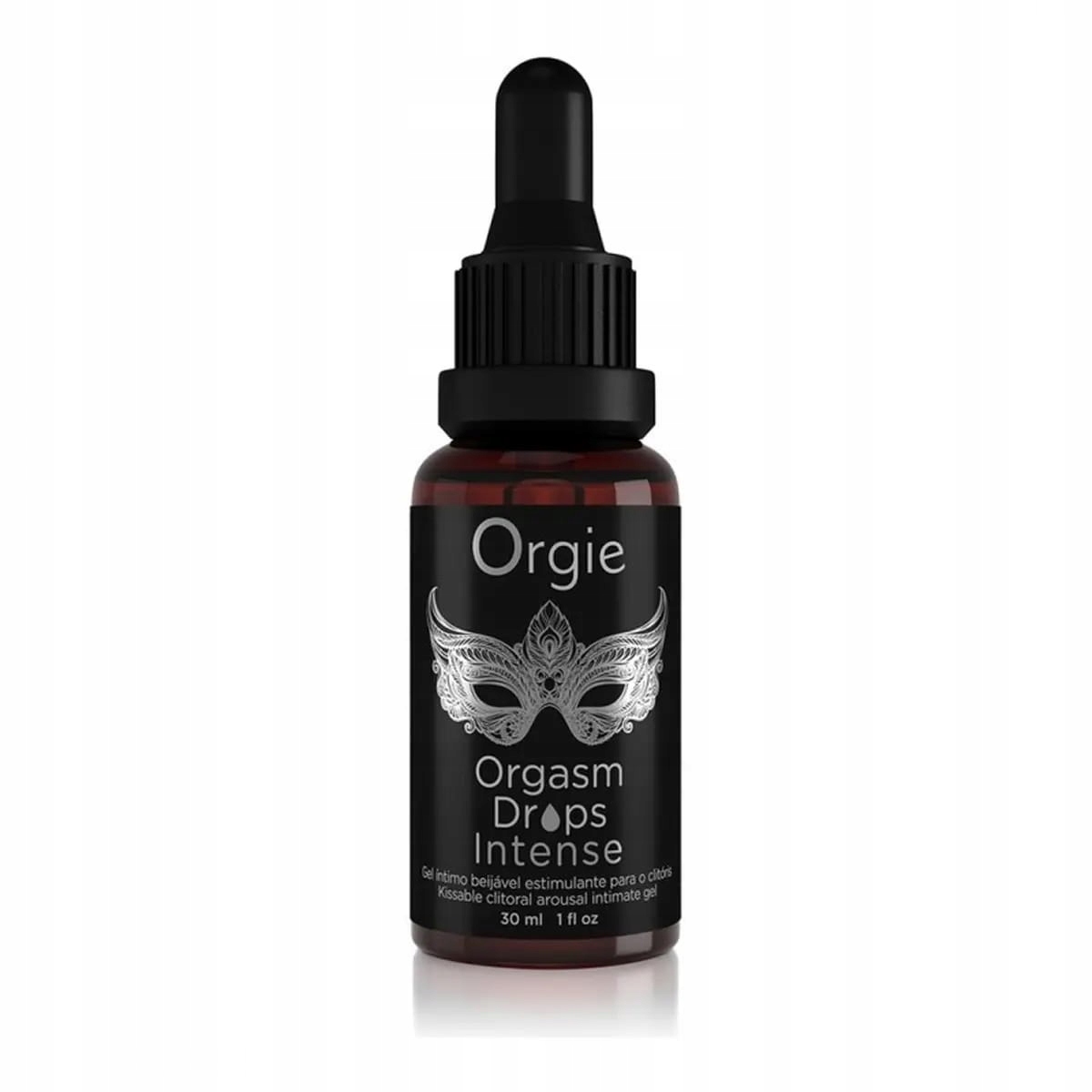 Стимулюючі краплі Orgie Orgasm Drops поставляються в маленькій скляній пляшці, і їх завжди можна точно відміряти піпеткою.