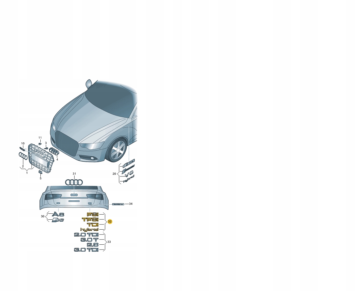Оригінальна буква Chrome Emblem Audi TFSI від дилера