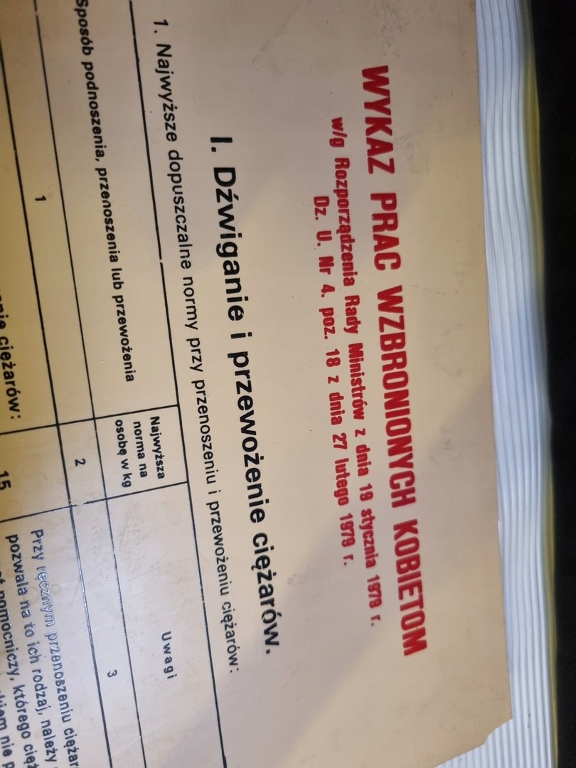 Оригінальна дошка з Польської Народної Республіки: Список робіт, заборонених для жінок A4