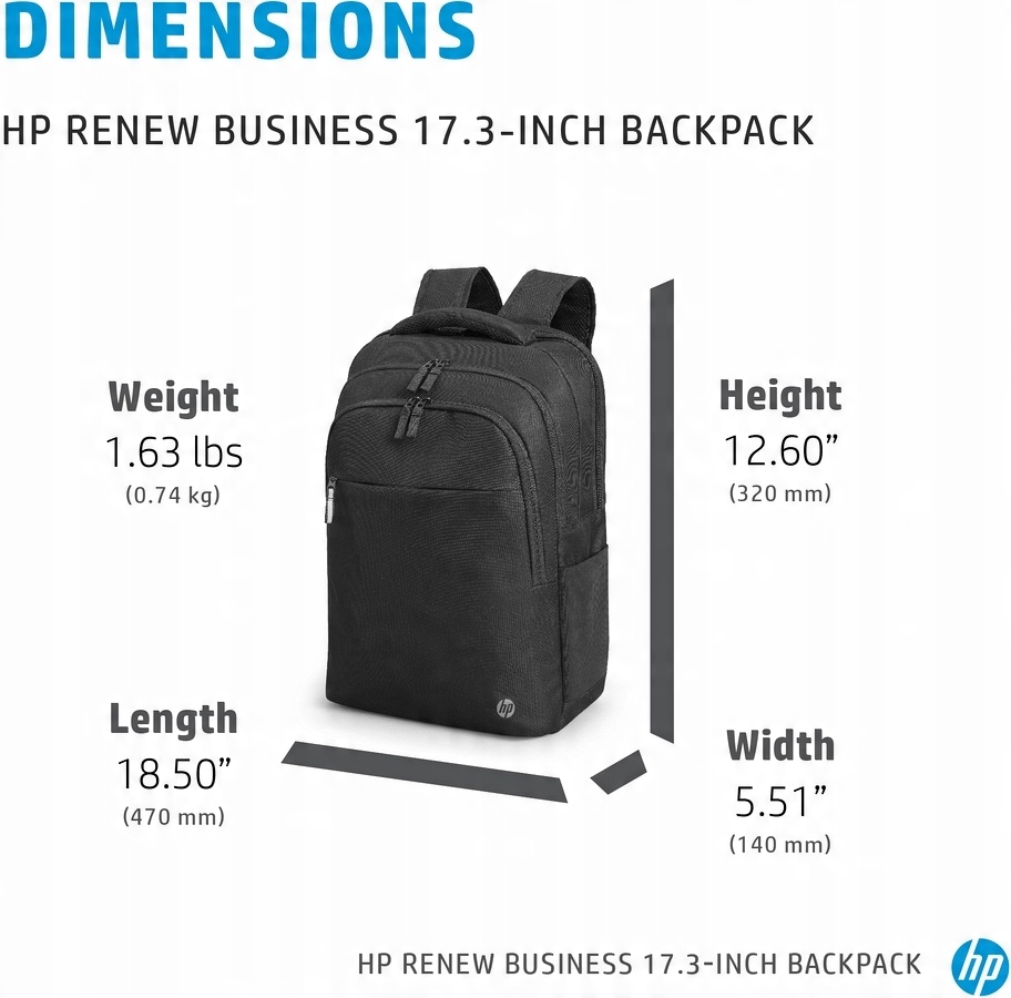 HP Renew Business 17.3 Backpack 3E2U5AAR, оригінальний рюкзак HP, призначений для ноутбуків з діагоналлю до 17.3", продукт серії business, найвища якість якість виготовлення та міцність вище середнього, до 13 відділень, кишень і відділень, RFID-кишеня для зберігання карток, двостороння блискавка на основних кишенях. Наступник вилученої моделі 2SC67AA