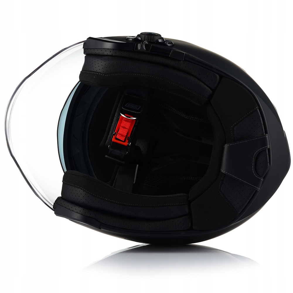 характеризується винятково довгим склом, що забезпечує високий комфорт подорожі. Видошукач виготовлено зі стійкого до подряпин матеріалу, а його поверхня відбиває УФ-промені. Щоб їзда в сонячний день не була проблемою, шолом оснащений сонцезахисним козирком, який можна витягнути одним швидким рухом руки. Без проблем це можна зробити, не знімаючи мотоциклетних рукавичок.