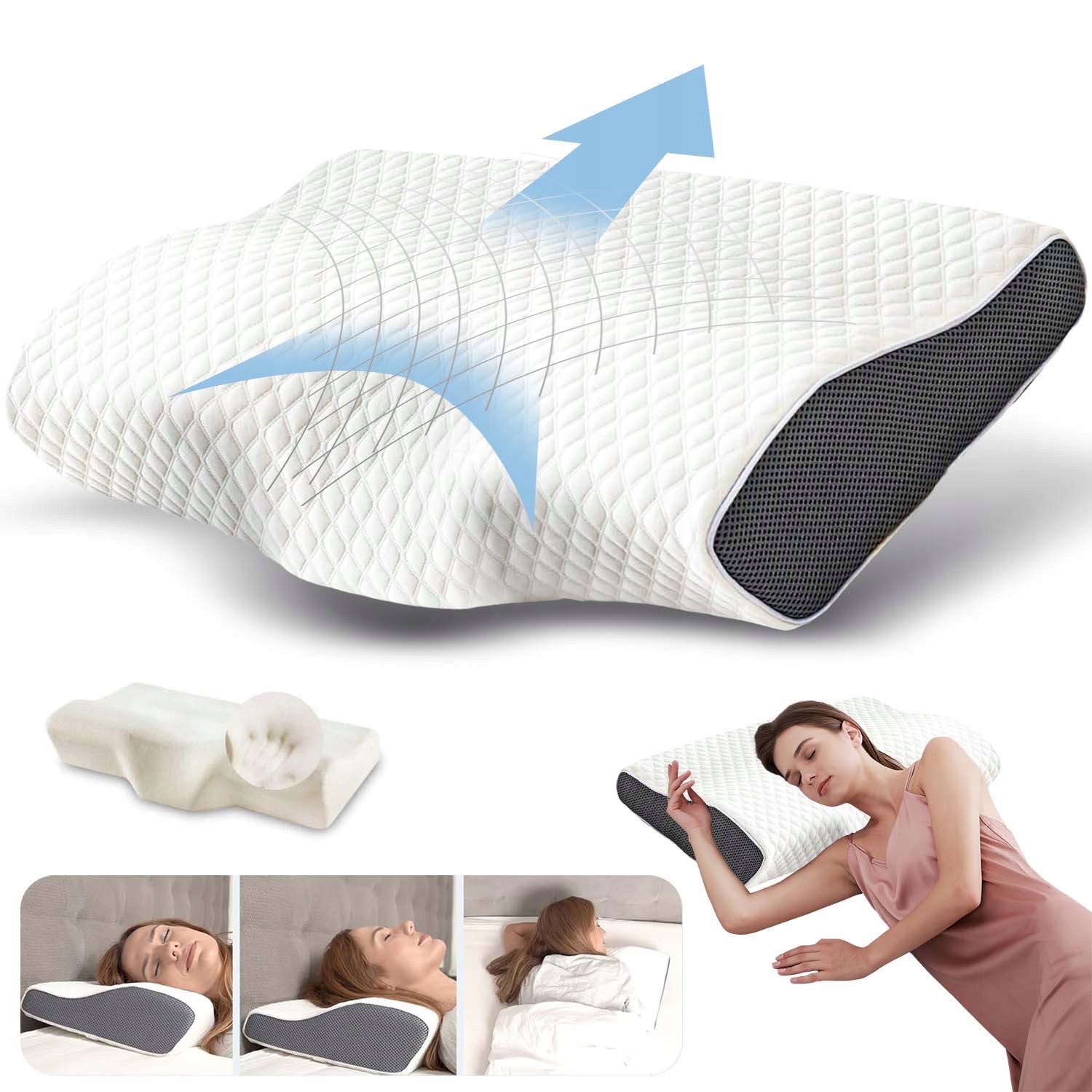 🔹Форма метелика точно адаптується до природного вигину шийного відділу хребта, ефективно прискорюючи засинання та подовжує час сну.