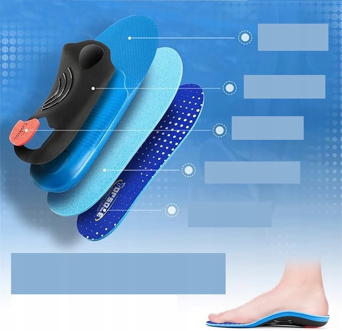 - Ортопедичні устілки з міцнішою підтримкою зводу, розроблені відповідно до біомеханіки стопи, забезпечують додаткову підтримку, допомагаючи розподілити тиск на стопу, зменшити надмірне розтягнення та пошкодження підошовної фасції та полегшити біль, пов’язаний із підошовним фасціїтом.