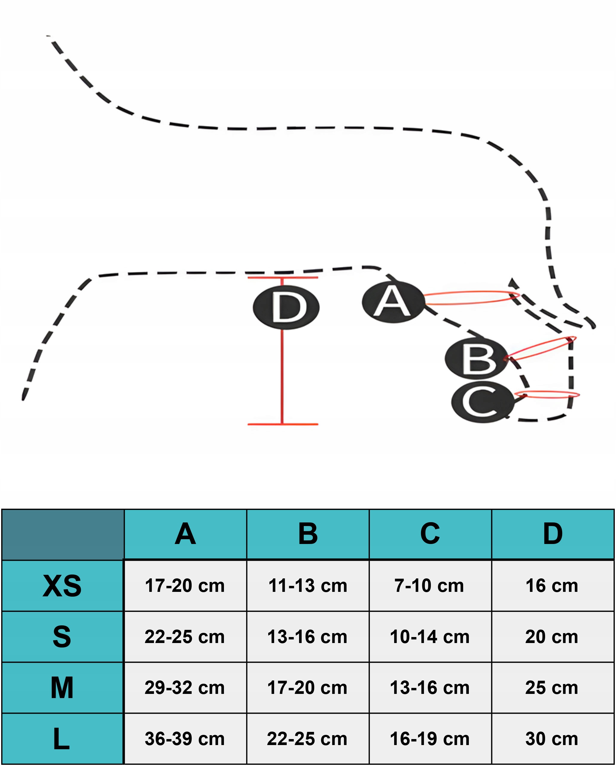 c - виміряти окружність нижче кальканей. Ортези розміру - XS