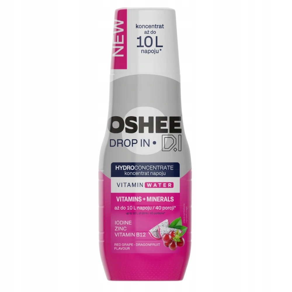 OSHEE DROP IN Hydroconcentrate ідеально підходить для людей, які ведуть активний спосіб життя, піклуються про щоденне зволоження або шукають здорову та смачну альтернативу солодким напоям. Його унікальність є результатом синергії вітамінів групи B (ніацин, B6, біотин, B12) і важливих мінералів: цинку та йоду.