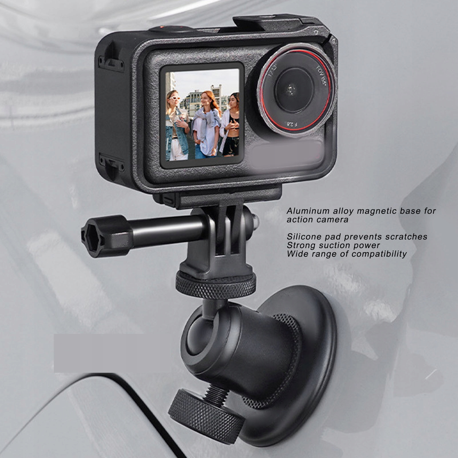 3. Безшовний дизайн: безшовне кріплення магнітної основи зводить до мінімуму ризик подряпин на контактних поверхнях, забезпечуючи захист як для камери, так і для встановлених поверхонь.