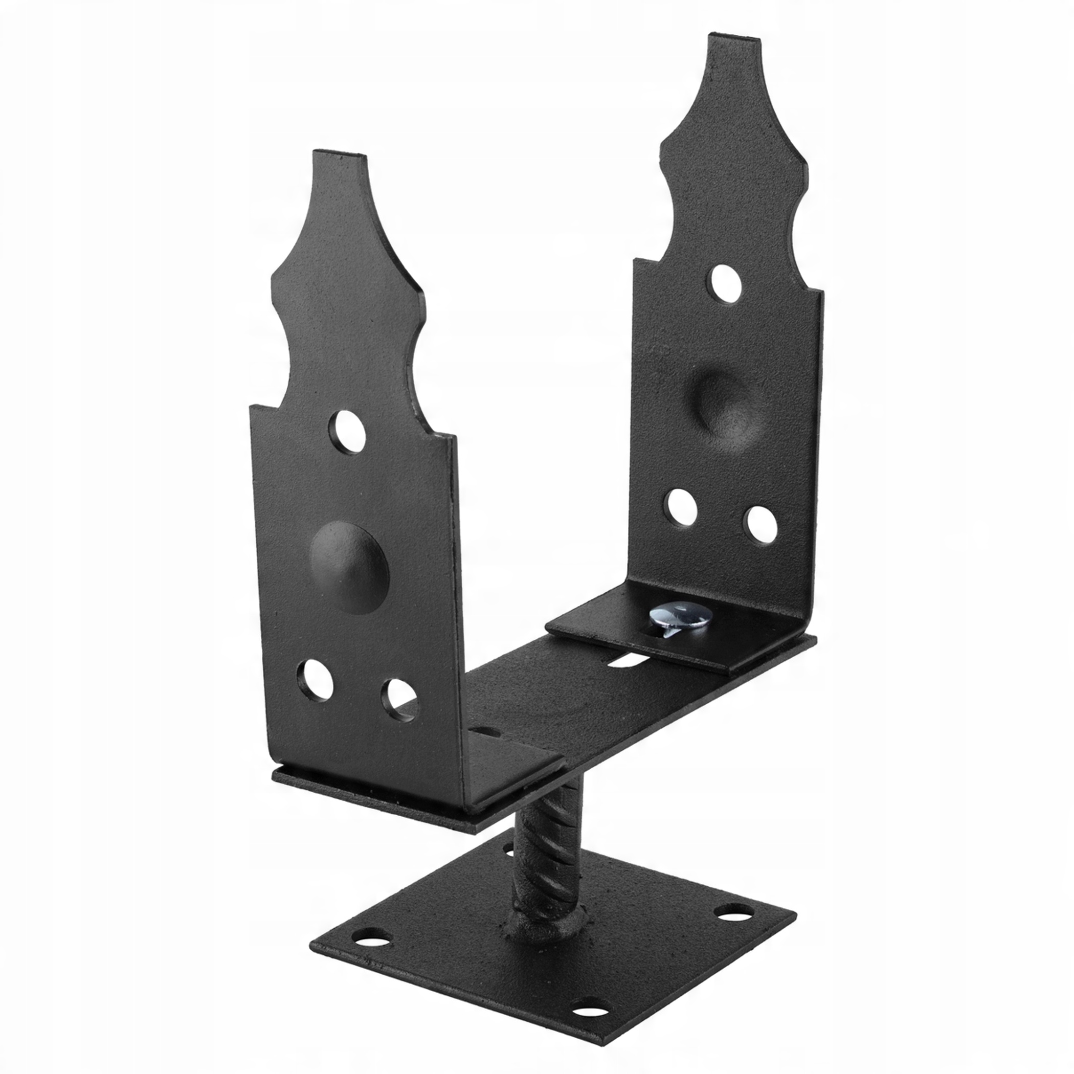 Просте регулювання за допомогою оцинкованих гвинтів і гайок дозволяє кріпити стовпи та дерев'яні елементи товщиною до 160 мм.