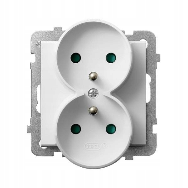 Ospel Sonata, подвійна розетка із заземленням і струмопроводом, біла, GP-2RRZP/m/00