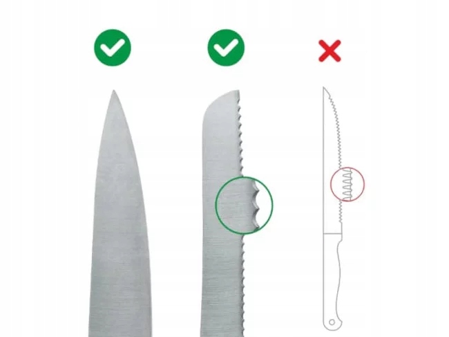 через одну точильку можна заточувати обидва ножі гладким і зубчастим лезом* (вимкнення ножів невеликими зубами для стейків).