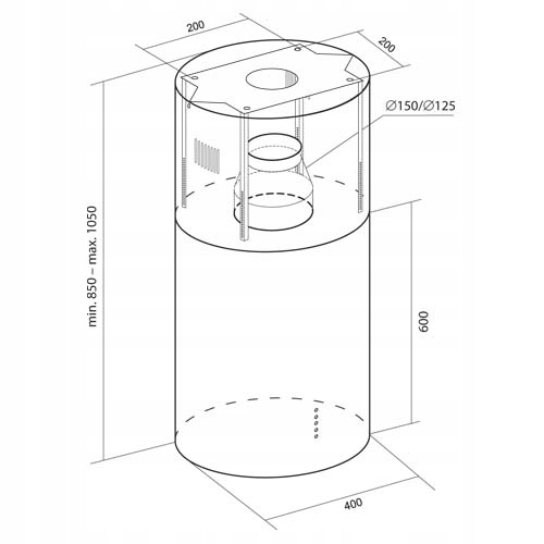ОСТРІВНА КУХОННА ВИТЯЖКА ТРУБА ЦИЛІНДР TOFLESS 40 ЧОРНА