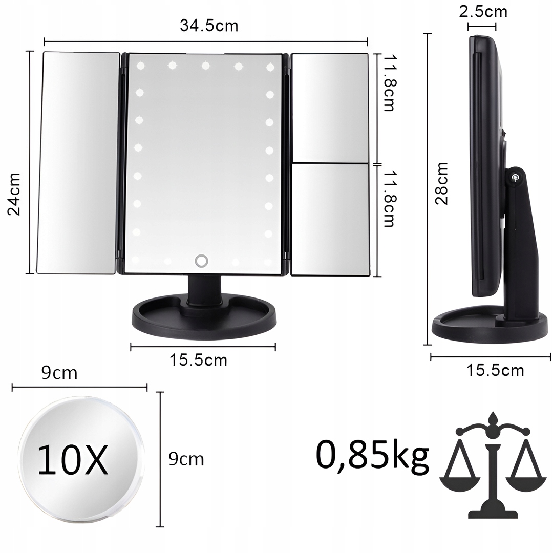 Освітлене світлодіодне косметичне дзеркало відрізняється не лише вдосконаленими функціями, але й елегантним виглядом. У класичному білому кольорі дзеркало поєднується з кожним декором, додаючи сучасну елегантність. Загальна висота дзеркала становить 28 см з основою, а його ширина - 34,5 см, що робить його ідеальним розміром як для косметичних таблиць, так і для мобільного використання. Його компактний символ дозволяє зручно розташуватись у різних просторах, забезпечуючи ідеальний погляд на будь -який час.