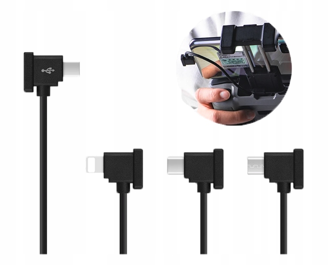 Кабель дозволяє підключати контролери дронів до телефонів / смартфонів і планшетів. Завдяки цьому ми можемо передавати дані та зображення між контролером і встановленим у ньому телефоном / смартфоном / планшетом.