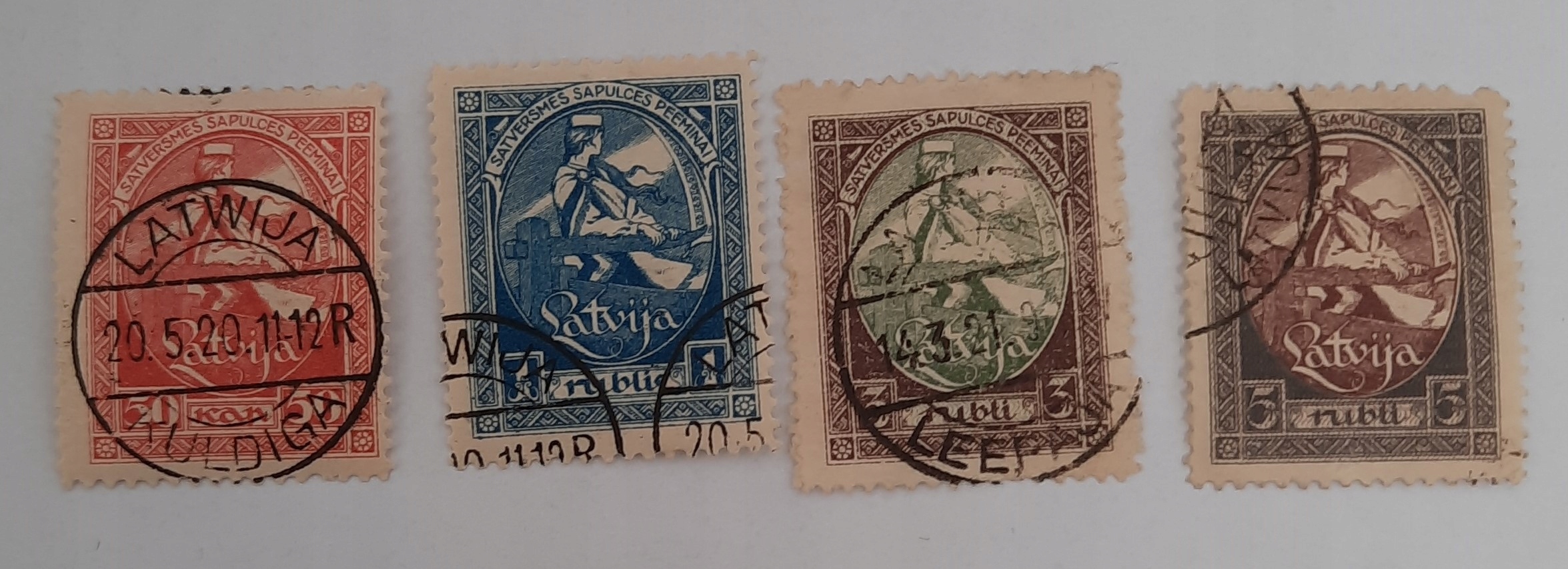 Серія з чотирьох марок гашення 1920 року (Міхель, Латвія: 42A-45A). Стан: фото. штампи з петлями.