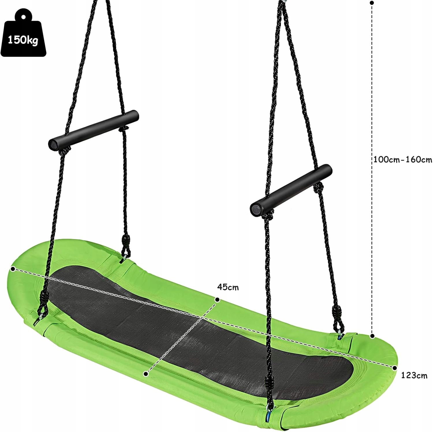 Завдяки великій, овальній платформі (123 х 45 см) Ця гойдалка забезпечує достатньо місця для кількох дітей, які можуть розділити сидіння та грати разом. Висота гойдалки можна відрегулювати в діапазоні від 100 см до 160 см, щоб ви могли гнучко адаптуватися до своїх потреб.