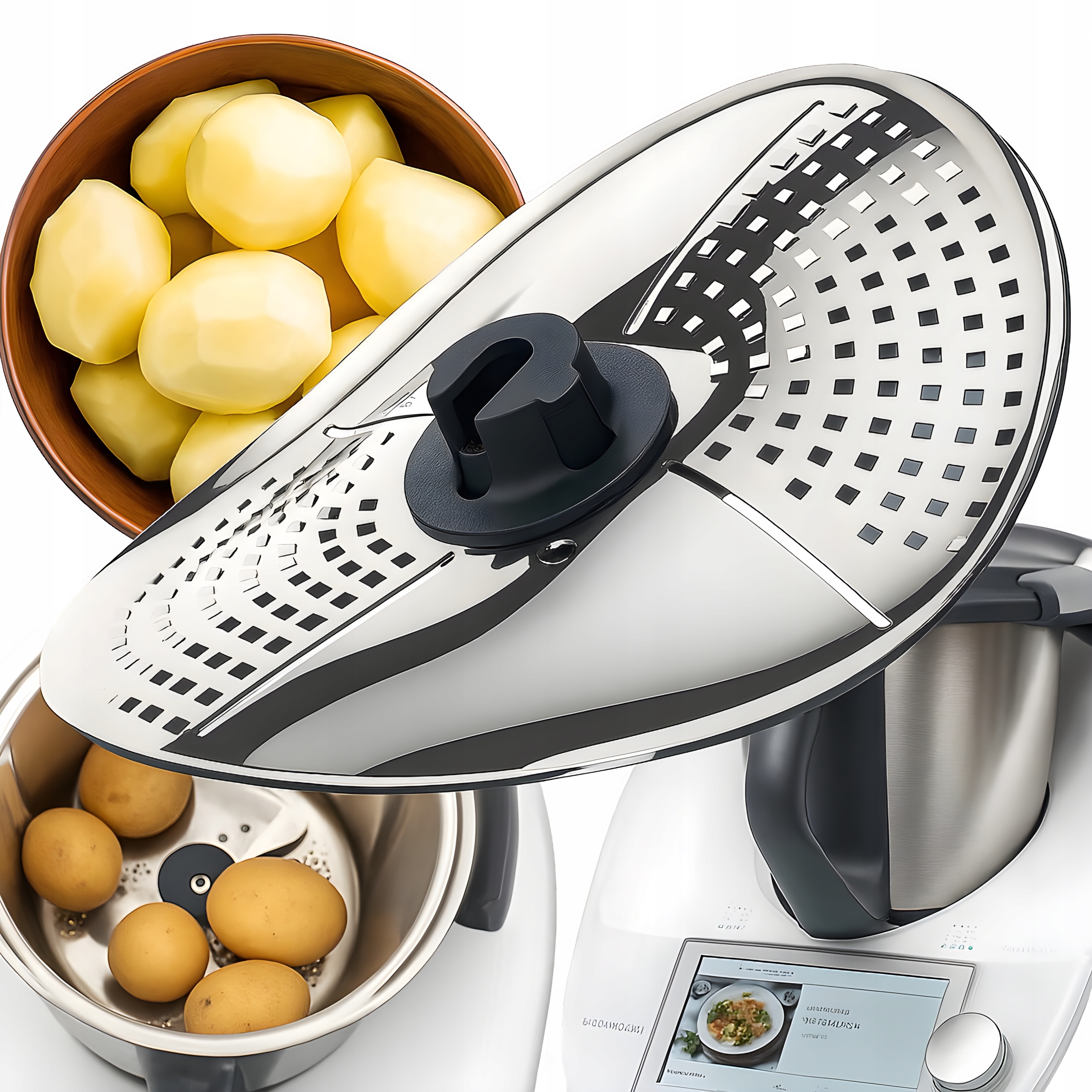 Кришка виготовлена з високоякісної нержавіючої сталі, стійкої до пошкоджень і контакту з їжею. Він захищає ніж від затуплення і в той же час дозволяє воді вільно циркулювати, що сприяє ефективному натиранню шкірки під час очищення. Підходить до популярних моделей Thermomix, тож ви можете легко встановити його у свій пристрій.