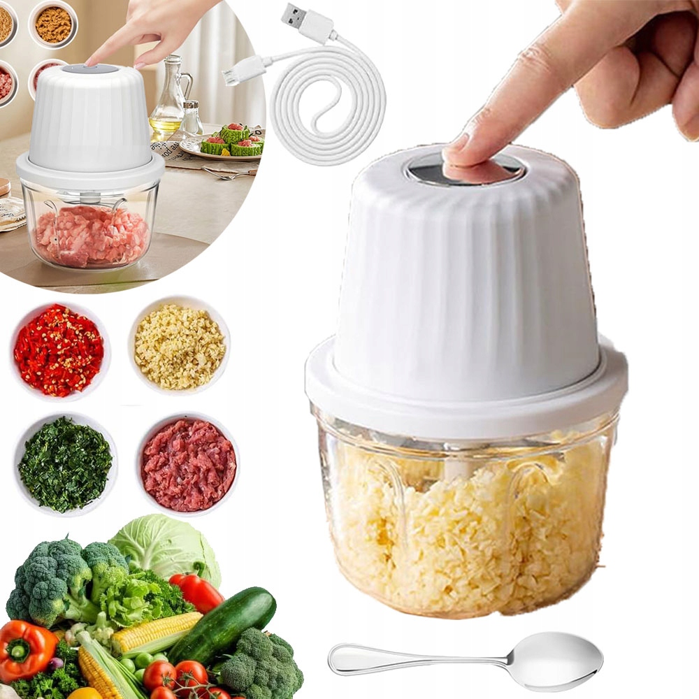 ОВОЧЕВА ПОШИНКУВАЛЬНА ЦИБУЛЯ, ЧАСНИК, МІНІ ЕЛЕКТРИЧНА ПОШИНКУВКА + 6 ЛЕЗІВ