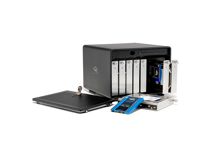 OWC ThunderBay 8 — це професійний зовнішній корпус із 8 відсіками та портом Thunderbolt 3 для жорстких дисків і відсіками для гарячої заміни
