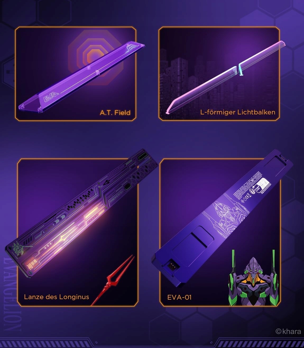 - Спеціальні функції: Ігрова конструкція в стилі механізму, двошарової конструкції, сумісна з речовиною та Alexa, легкими ефектами Євангеліона