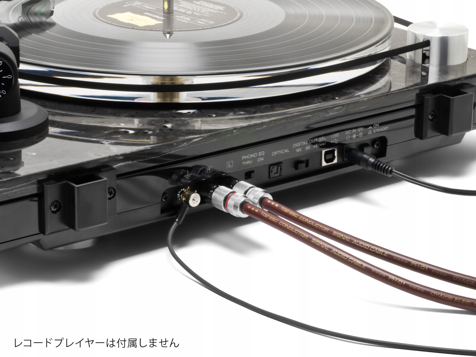 Використовується 1-жильна конструкція екрану, яка підходить для малої ємності, а відстань між середнім дротом і екраном ретельно відрегульовано для досягнення низької ємності . XLPE використовується як ізоляційний матеріал, який має низьку ємність і відмінну механічну міцність. Навіть якщо кабель зігнутий, відстань між сигналом і екраном може залишатися постійною, забезпечуючи стабільну передачу без коливань навантаження. Для забезпечення гнучкості кабелю в екрані використовується горизонтальна обмотка, а в оболонці використовується ПВХ, що не містить свинцю. Роз’єми RCA на обох кінцях є оригінальними роз’ємами з позолоченими контактами 24K, а для пайки роз’ємів і кабелів RCA використовується «SS-47», розроблений Oyaide Electric для аудіо.