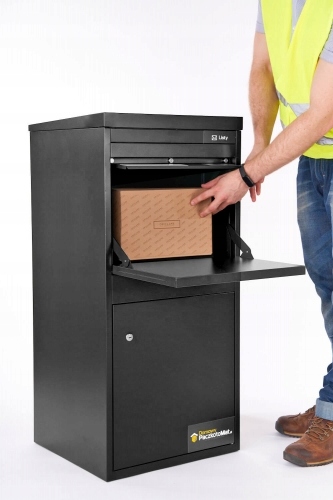 Ємність ящика дозволяє приймати посилки розміром до 45 см x 34 см x 26 см, а також є слот для звичайних листів.