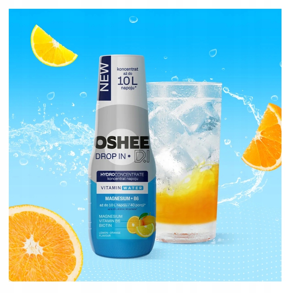 Осхе падіння в магнію гідроконцентратова + B6 - помаранчевий та лимон - функціональний концентрат, який після змішування з концентрацією води . Магній зменшує втому, вітамін В6 підтримує трансформацію енергії, а біотін позитивно впливає на метаболізм макроелементів. Свіжий смак лимона та апельсина робить його приємним ритуалом для доповнення рідини.