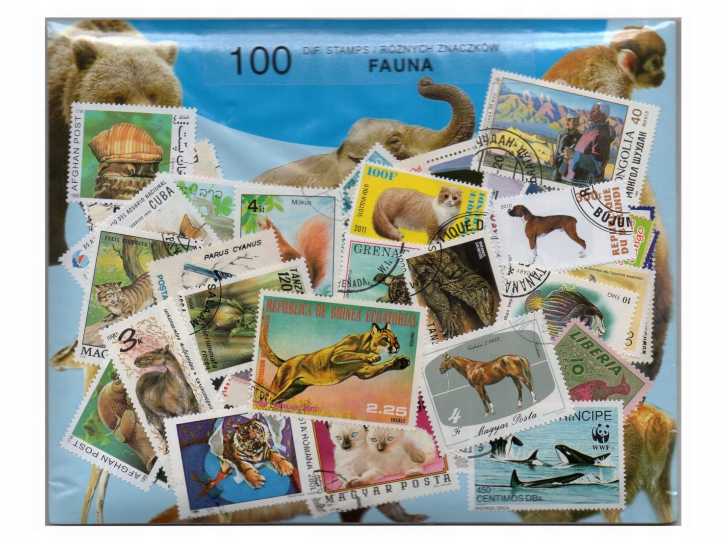 Пакет із 100 поштових марок -фауна
