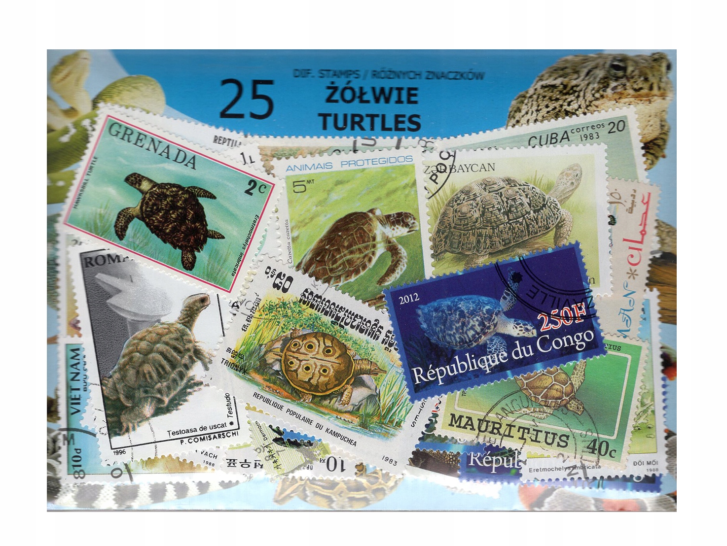 Pakiet 25 znaczków pocztowych - ŻÓŁWIE