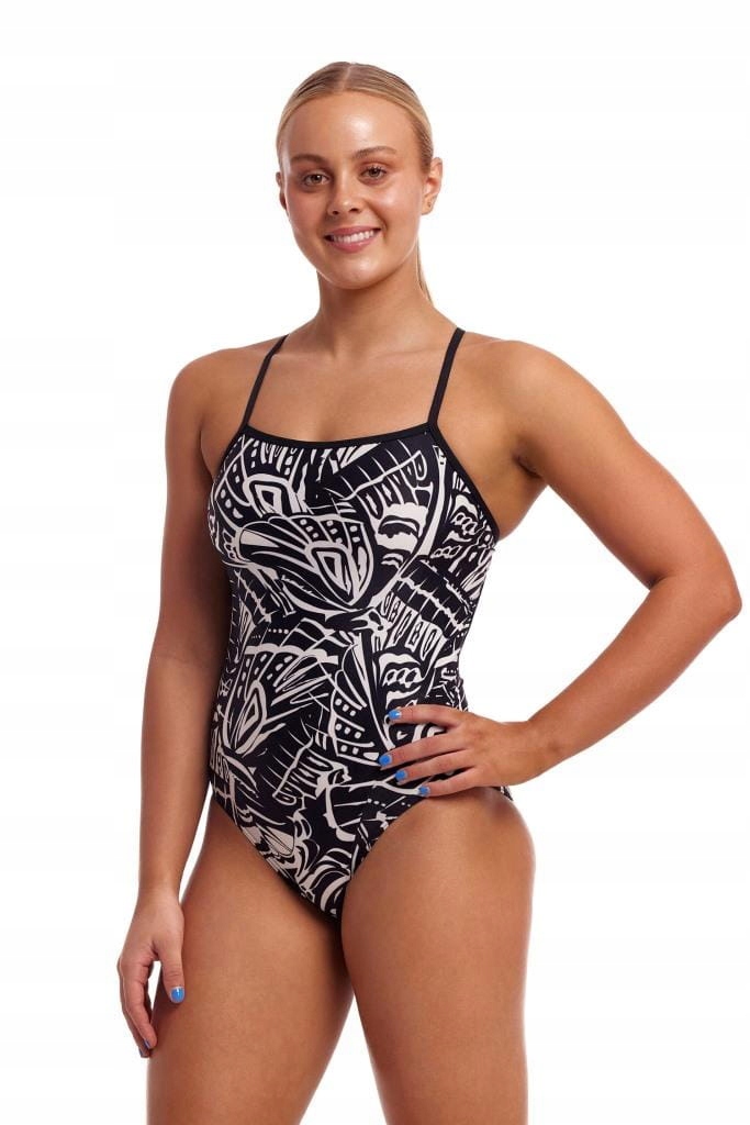 одиночний ремінь - це спортивний розріз жіночого плавального вбрання Funkita. Він характеризується поодинокими тонкими ремінцями, які на задній частині розташовані у формі букви V. Задня частина сильно вирізана (виявлена). У нижній частині вбрання штрихи були вставлені для кращого, спортивного положення на тілі. На стегнах вирізані трохи вище, ніж напр. У діамантних костюмах. Вся передня панель вбрання вистелена підкладкою, що значно збільшує комфорт під час тривалих тренувань у воді.