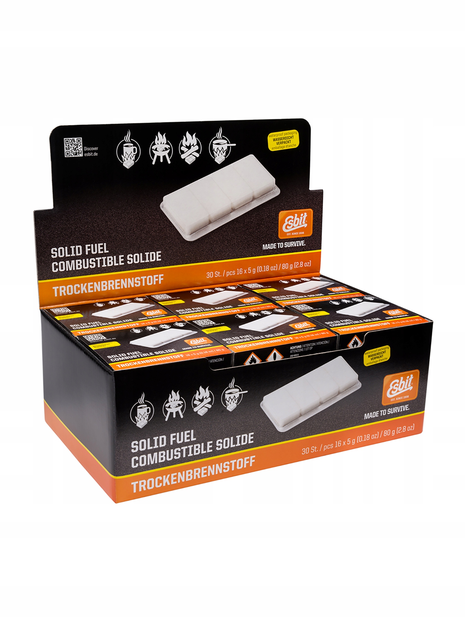 Кожна з 16 таблеток, що входять до набору таблеток на твердому паливі Esbit 16 x 5 г, горить приблизно 6 хвилин. Паливо можна використовувати під час кемпінгу в полі та у високих горах, навіть коли температура падає значно нижче 0ºC.