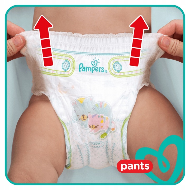 Щоб полегшити заміну підгузників батькам, підгузки Pampers Pants надягають як звичайні трусики. Зняти їх так само легко, просто відірвіть боки підгузників. З підгузками Pampers Pants кожна дитина може навчатися, грати та досліджувати навколишній світ без будь-яких обмежень.