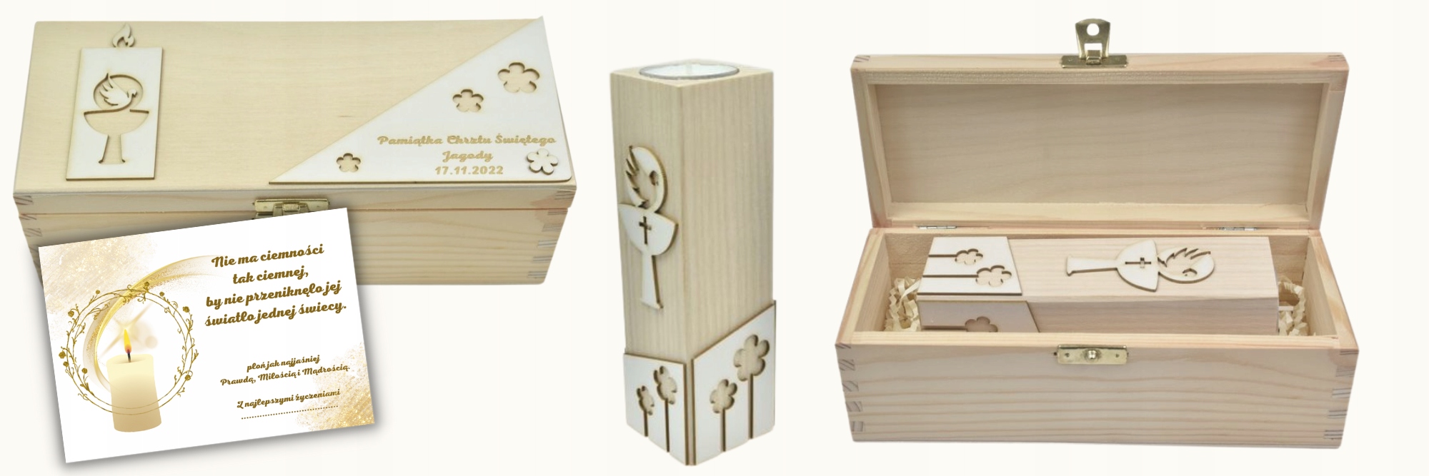 ім'я дитини - ми вигравіруємо його на кришці коробки та на дерев'яному свічнику