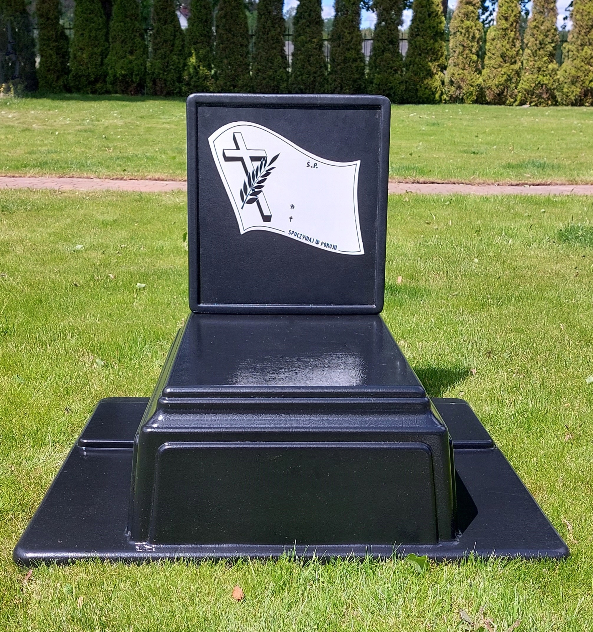 Наш надгробок виготовляється в процесі термоформування з пластику ABS товщиною 5 мм із текстурою шкіри, що забезпечує надзвичайну стійкість до погодних умов та УФ-випромінювання.
