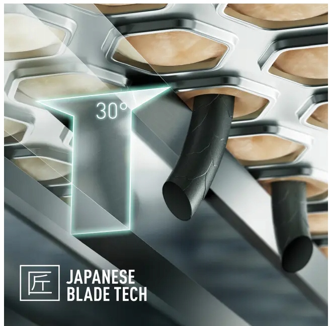 Усі леза виготовлені з хірургічної нержавіючої сталі з високою міцністю та стійкістю до іржі, що забезпечує тривале гоління. Спираючись на японську традицію виготовлення самурайських мечів, ми розробили міцні внутрішні леза з кутом нанорізу лише 30 градусів. Це означає, що вони можуть ефективно підстригти найгустіше волосся на обличчі мінімальною кількістю рухів, не завдаючи шкоди шкірі.