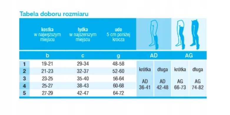 Умовою ефективності компресійної терапії є підбір виробу потрібного розміру. Розмір слід визначати, виходячи з обхвату та довжини ноги в точках, зазначених на графіку та в таблиці вище.