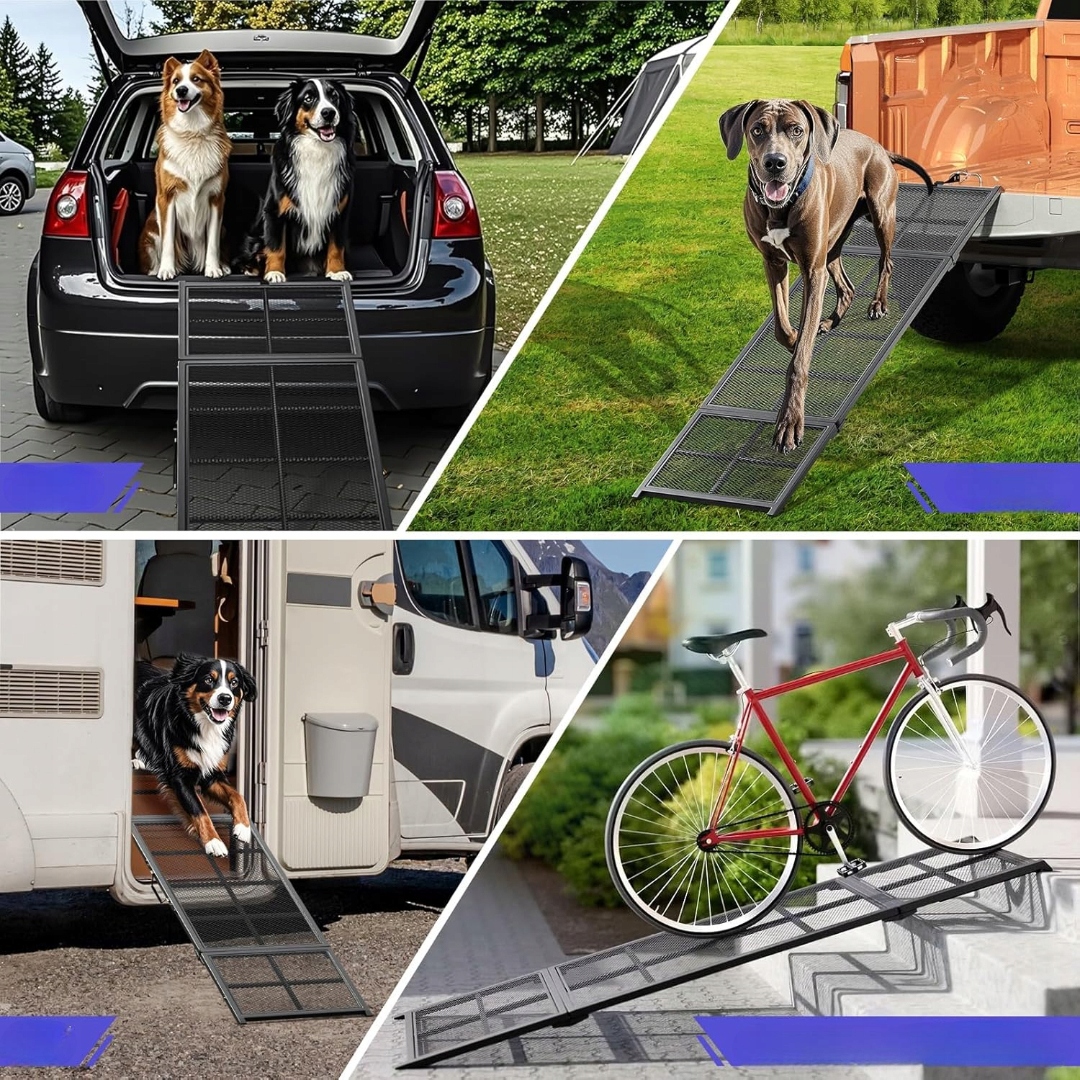 Наш великий пандус для собак надзвичайно довгий – 74 дюйми, що ефективно зменшує навантаження на суглоби та мінімізує напругу м’язів і біль, спричинений стрибками. Ідеально підходить для літніх цуценят, цуценят з обмеженими можливостями, з короткими лапами або травмованих цуценят. Забезпечує вашому пухнастому другу безпечний і легкий доступ до автомобіля. Також підходить для підйому на високі ліжка, дивани та підвіконня в приміщенні.